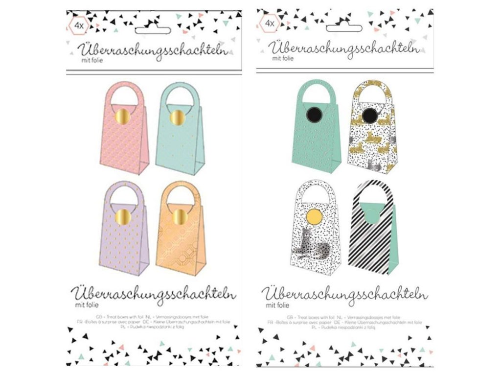 Praktická sada dárkových papírových taštiček se samolepkami nabízí jednoduché a zároveň hravé řešení pro balení menších dárků. V balení najdete 4 taštičky v různých designech, které jsou doplněné o samolepky pro uzavření.