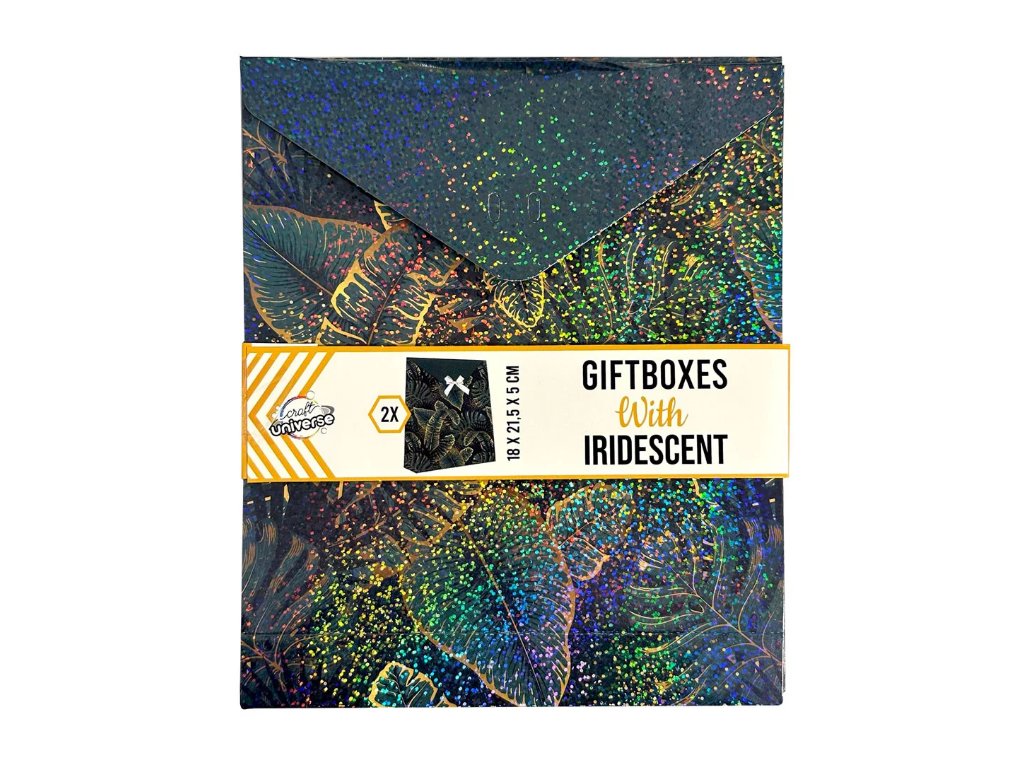 Sada dvou dárkových krabic s barevným leskem a jemným motivem přináší praktické a zároveň krásné řešení pro balení dárků. Krabice jsou vyrobené z pevného kartonu a díky své velikosti snadno pojmou menší i větší dárky – od drobností až po větší překvapení.
