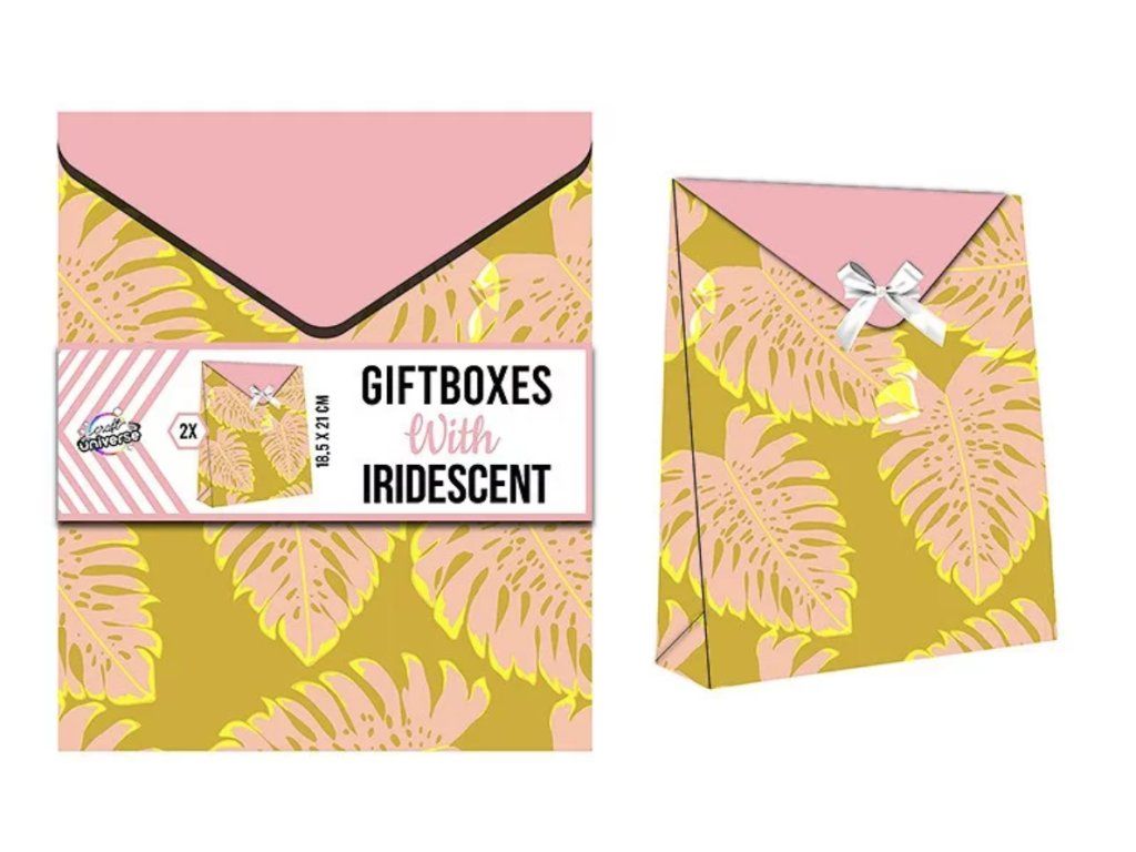 Sada 2 dárkových krabic s tropical motivem a jemným lesklým efektem nabízí stylové řešení pro balení dárků při různých příležitostech. Krabice jsou vyrobené z pevného papíru a krásně ozdobí jak malý dárek, tak větší překvapení.