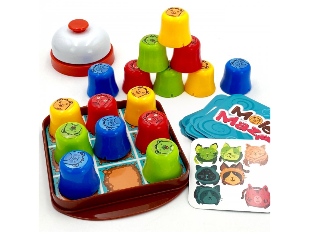 Objevte napínavou zábavu s hrou WOOPIE IQ Logická edukačně-strategická 2v1. Tato barevná sada spojuje klasickou hru Křížky a kolečka s originální hrou Mole Maze, kde hráči musí rychle reagovat a strategicky přemýšlet. Součástí balení je hrací deska s barevnými figurkami, zvukový zvonek a karty s úkoly.