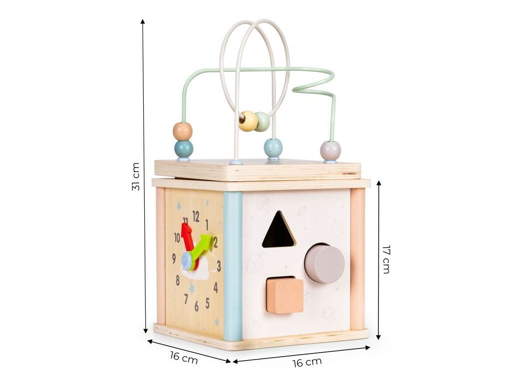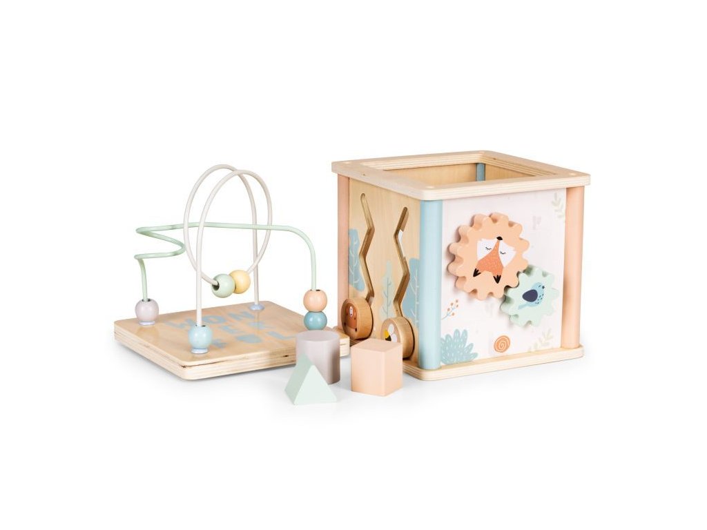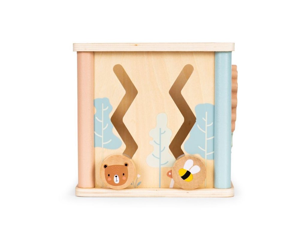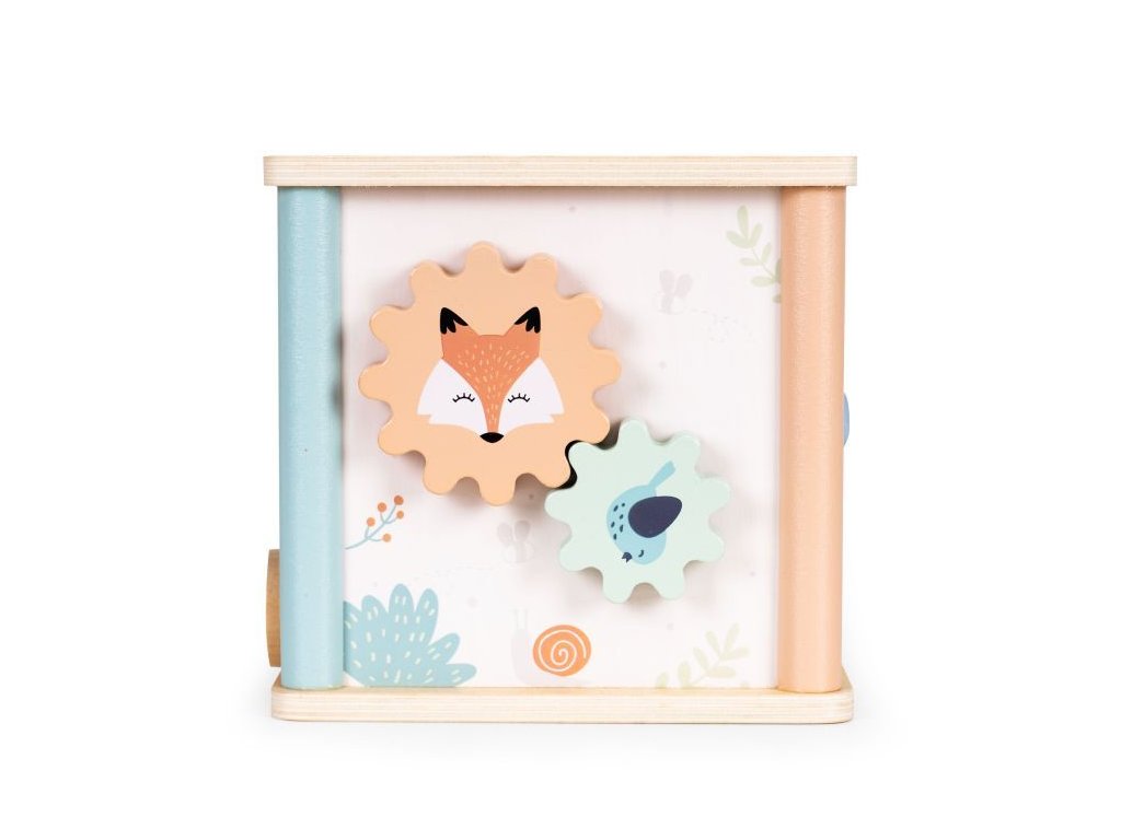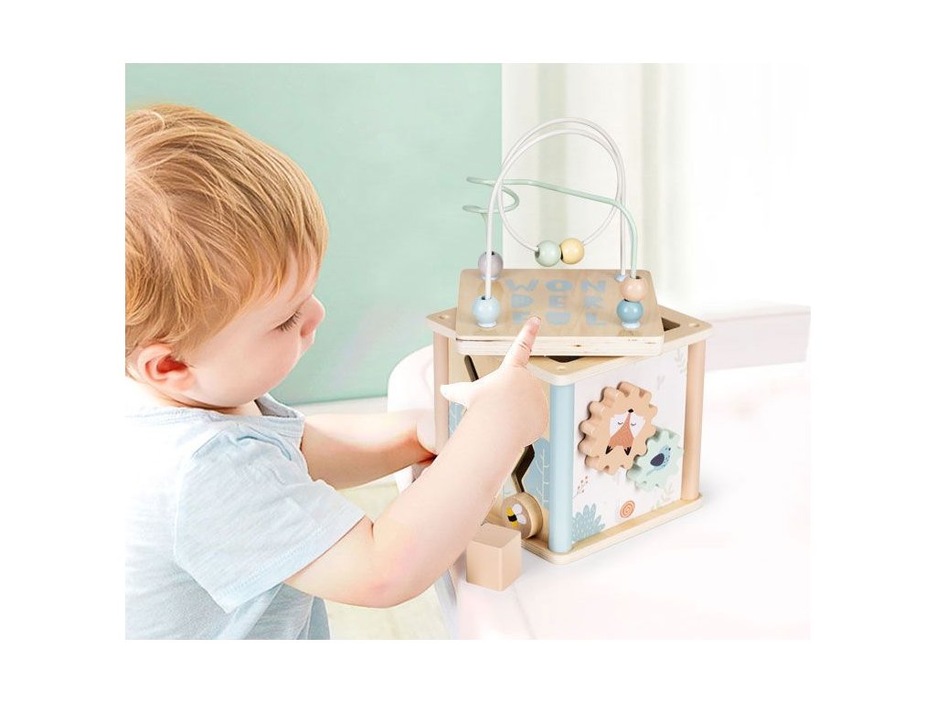 Kostka děti zabaví různými aktivitami, které podporují objevování, koordinaci i logické myšlení.