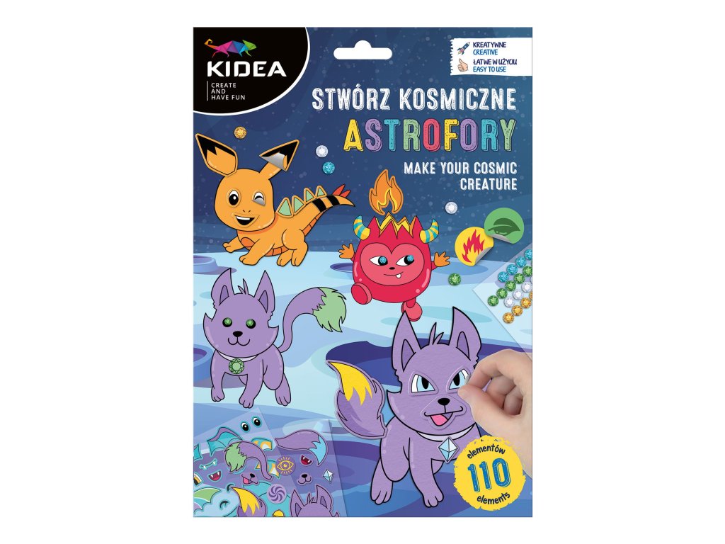 Připrav se na barevný výlet do vesmíru! Tato sada umožní dětem vytvořit si 4 různé vzory „Astroforů“, které mohou odlišovat podle nálady – každý má svoje plyšové chloupky, které reagují na náladu barev– a ozdobí je čtyřmi archy samolepek a barevnými diamanty. Astrofory jsou malé roztomilé vesmírné bytosti, které svítí vlastní osobností – roztomilé, barevné a připravené rozveselit pokojíček i školní stůl.