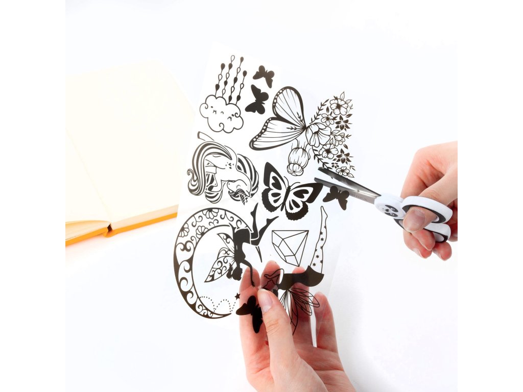 Použití: snadná metoda – nalep, sejměte vrstva, přilož fólii, třete a hotovo! Vhodné na sešity, obaly, dekorace i dárky