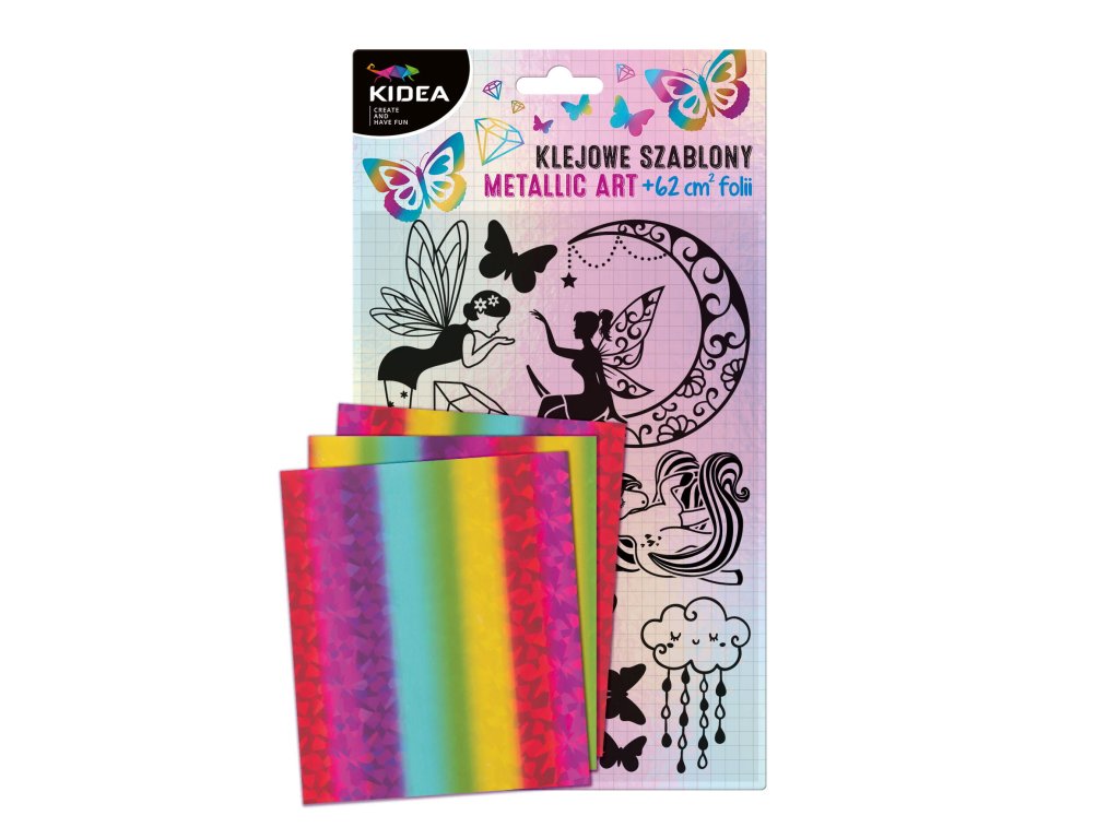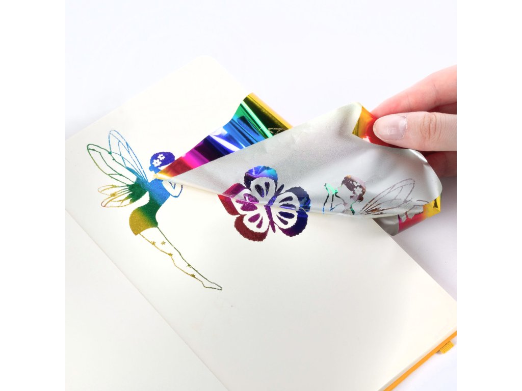 Chceš přidat špetku kouzla každodenním věcem? Tahle kreativní sada Metallic Art Magic od KIDEA je ryzí pohádka ve fóliích – stačí nalepit šablonu, stáhnout krycí fólii, přiložit duhovou fólii a třít – a vzor se krásně přenese! Motivy inspirované světem víl a fantasy se rozzáří v kovovém efektu, který zaujme na první pohled. Lepit můžeš na papír, desky sešitů, přání i pokojové dekorace – jedna sada rozsvítí svět malých i velkých tvůrců.