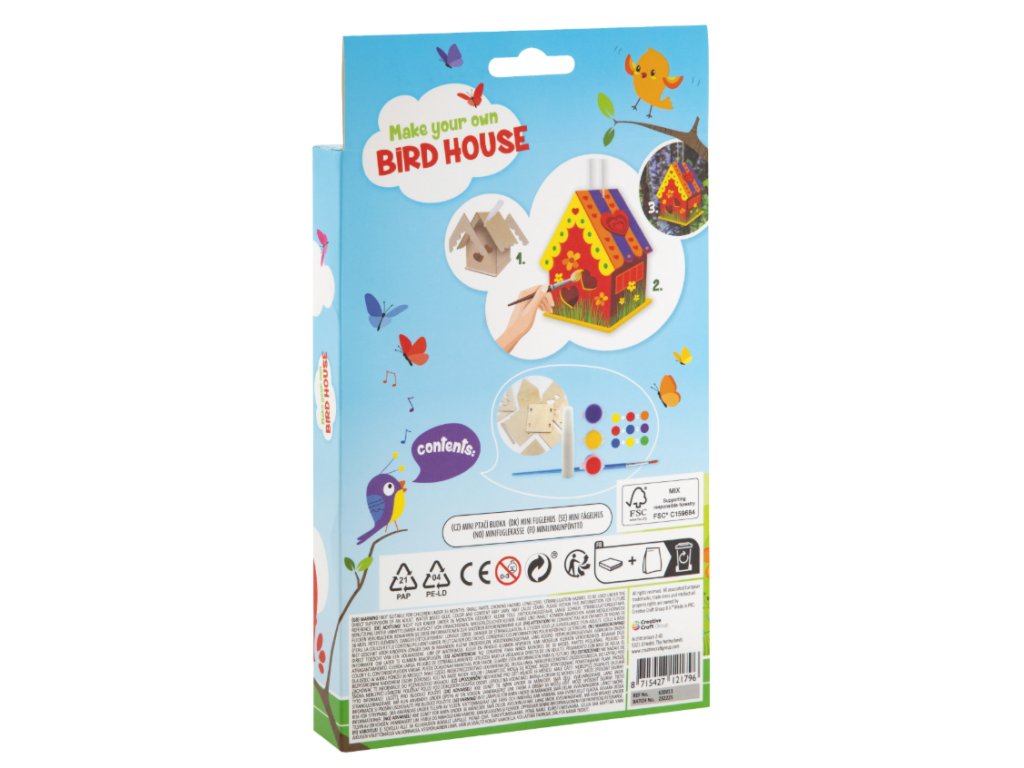 Sada obsahuje vše potřebné pro jednoduché sestavení i dekorování, takže se do tvoření mohou pustit děti samy nebo společně s rodiči. Po dokončení vznikne nejen originální dekorace, ale i praktický domeček pro drobné ptactvo.