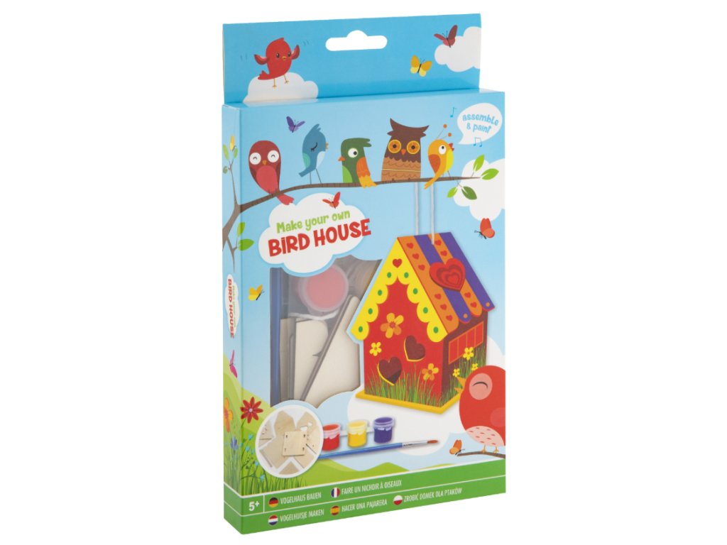 použití: sestavení a dekorování budky, zavěšení na zahradu nebo balkon
