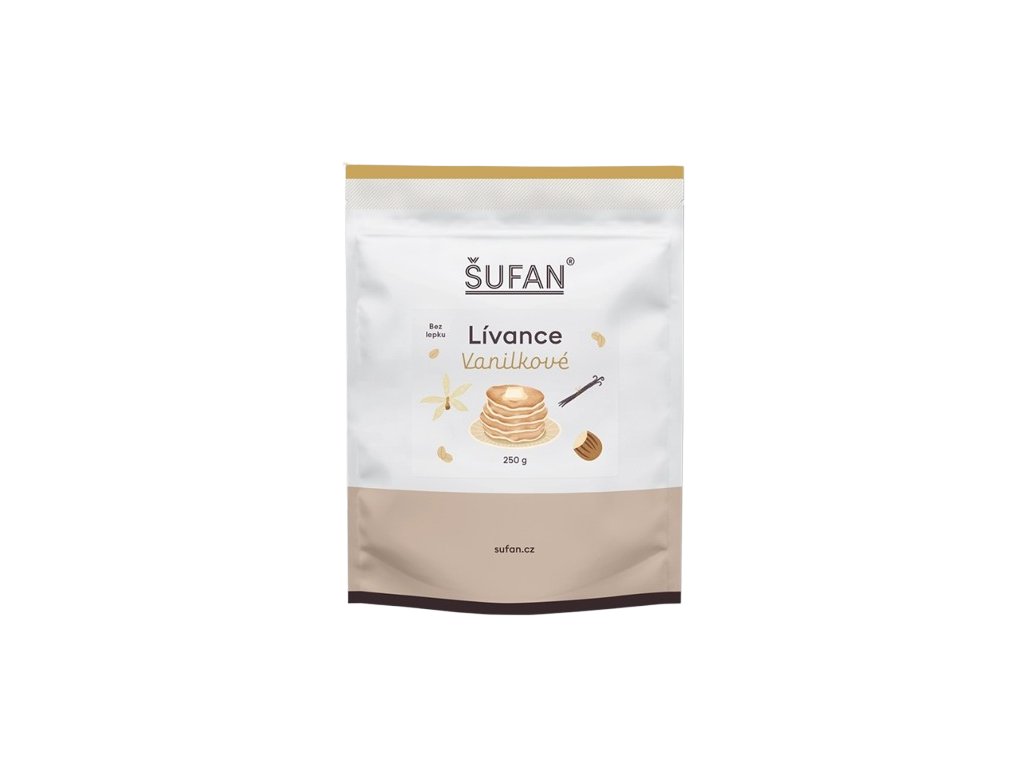ŠUFAN vanilkové lívance přinášejí klasickou chuť domácích lívanců v moderním, zdravějším provedení. Jemná vůně vanilky se snoubí s měkkou a vláčnou strukturou, kterou vytvářejí kvalitní ovesné vločky a další pečlivě vybrané přísady. Výsledkem je lívaneček, který potěší chuťové buňky i vaše tělo — bez přidaného cukru, bez zbytečných konzervantů a s přirozenou sladkostí, která pochází z kvalitních surovin.
