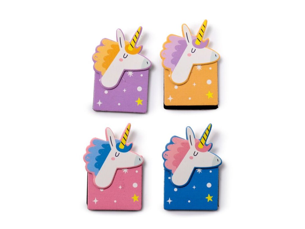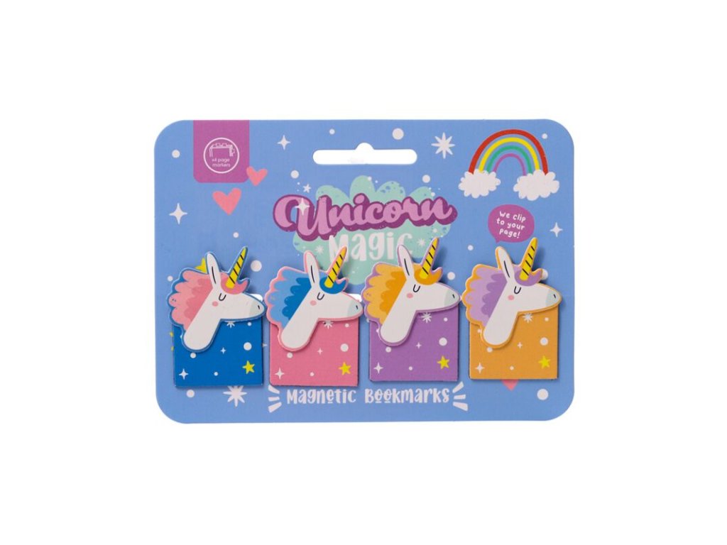 Čtení může být ještě kouzelnější. Tato sada čtyř magnetických záložek s motivem jednorožců spolehlivě udrží vaši stránku v knize, sešitě nebo diáři. Díky magnetu pevně drží na místě a hravý design rozzáří každý okamžik s oblíbeným čtením či psaním poznámek. Skvělý doplněk pro malé i velké knihomoly.