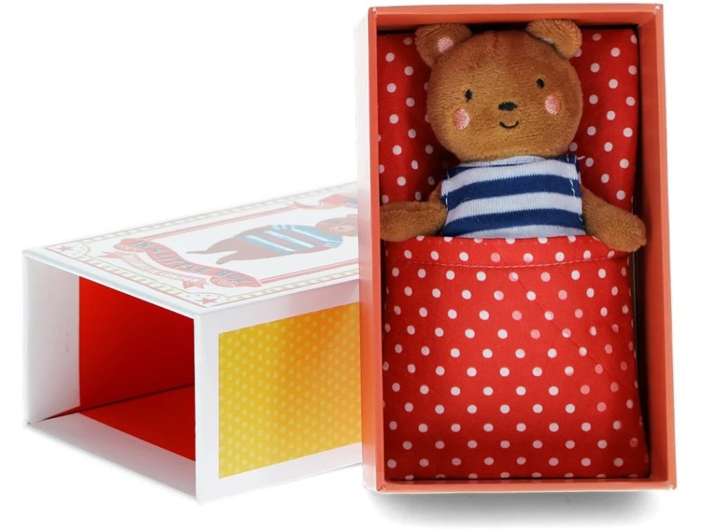 Tento hebký medvídek od Rex London si nosí svůj pelíšek vždycky s sebou. Děti ho můžou vzít do postýlky, na cesty i na výlet k babičce – a medvídek se v pelíšku pohodlně uvelebí, ať jsou kdekoliv. Měkký, roztomilý a tak akorát do náruče. Ideální jako dárek pro menší děti, které si rády hrají „na postýlku“ nebo potřebují svého prvního opravdového plyšového kamaráda.