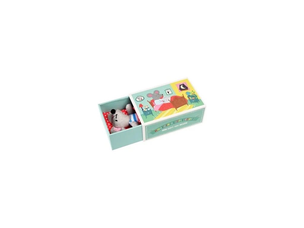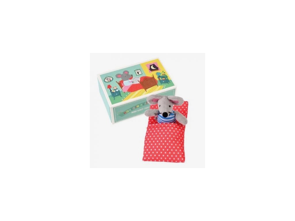 Tato malá plyšová myška od značky Rex London je ideálním společníkem pro děti, které si oblíbí jemné a roztomilé hračky. Myška je oblečena do pruhovaného trička a leží zabalená v puntíkované dece, připravená na sladký spánek. Celý set je balený v krásně ilustrované krabičce ve stylu zápalkové krabičky, což z něj činí skvělý dárek pro děti od 3 let.