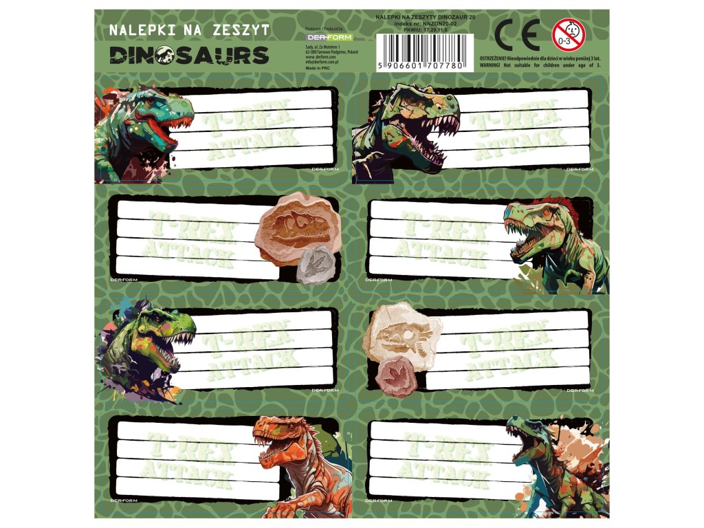 Design: barevní dinosauři s prostorem pro jméno, předmět a poznámku