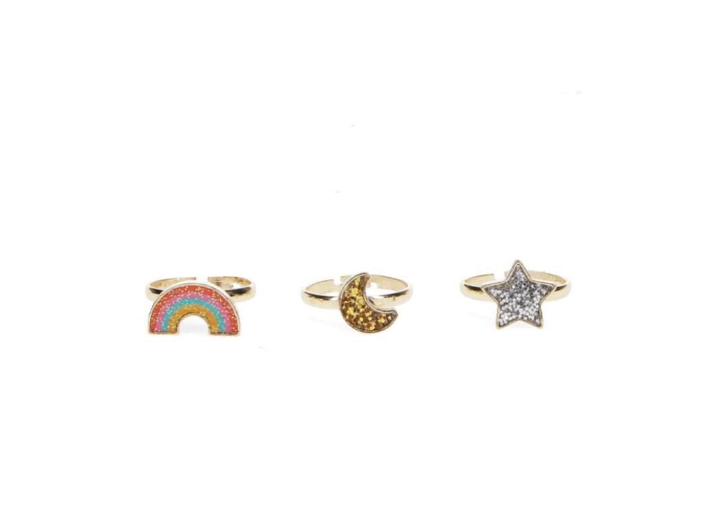 Prstýnky ve stylovém balení potěší každou malou parádnici. Každý z nich má jiný tvar i design – srdíčko, květinku nebo hvězdičku – a všechny se hezky třpytí. Díky nastavitelnému průměru se snadno přizpůsobí dětským prstíkům. Balení na kartě ve tvaru hvězdy navíc působí jako hotový dáreček. Ideální jako malá pozornost, doplněk do dárkové taštičky nebo stylová ozdoba do dětského šuplíku s poklady.