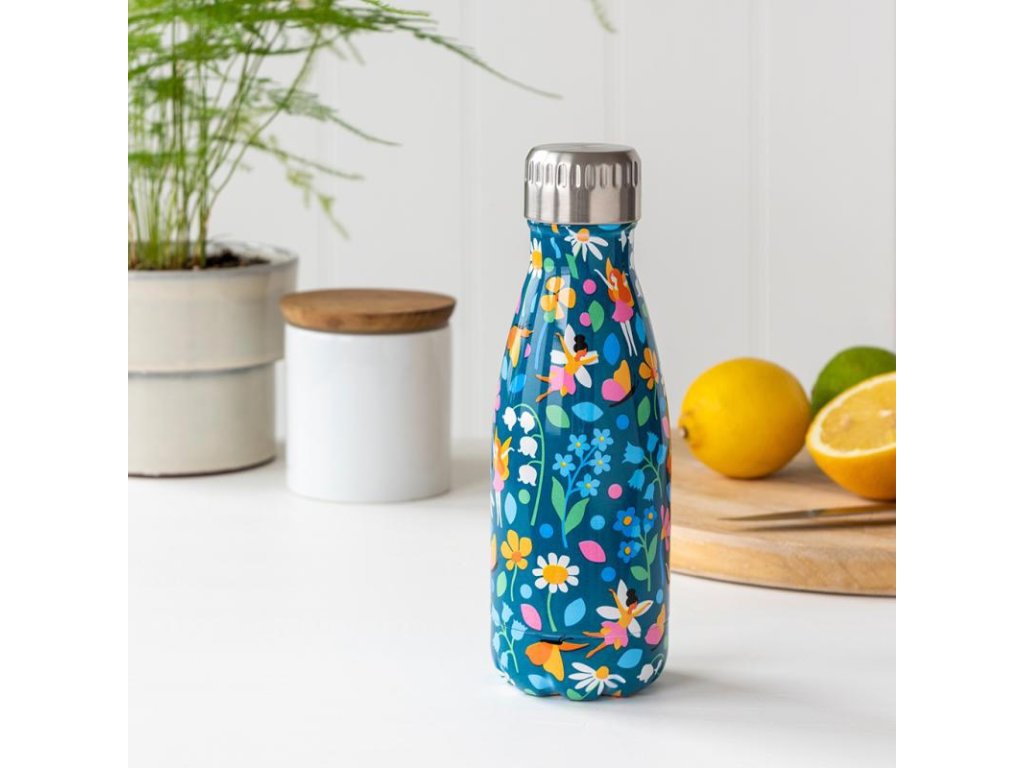 Tato nerezová láhev je skvělou ekologickou alternativou k jednorázovým plastovým lahvím. Díky dvojité stěně udrží nápoj dlouho v požadované teplotě – studený až 24 hodin, teplý až 12 hodin. Je lehká, odolná a svou velikostí přesně padne do dětské ruky. Šroubovací uzávěr s těsněním zajišťuje, že se tekutina nerozlije, a pohádkový motiv víl udělá z každého napití malý radostný okamžik.