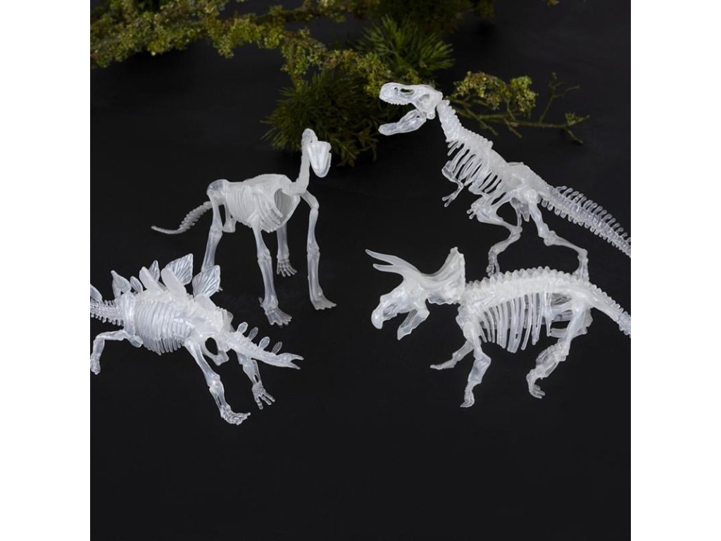 Tato jednoduchá stavebnice umožní dětem sestavit vlastní kostru dinosaura z jednotlivých dílků. Po nasvícení kostra ve tmě jemně svítí, což jí dodává magický efekt. Skládání podporuje zručnost, trpělivost a zájem o historii a přírodu. Díly jsou lehké, odolné a snadno do sebe zapadají. Skvělý tip na dárek pro malé objevitele.