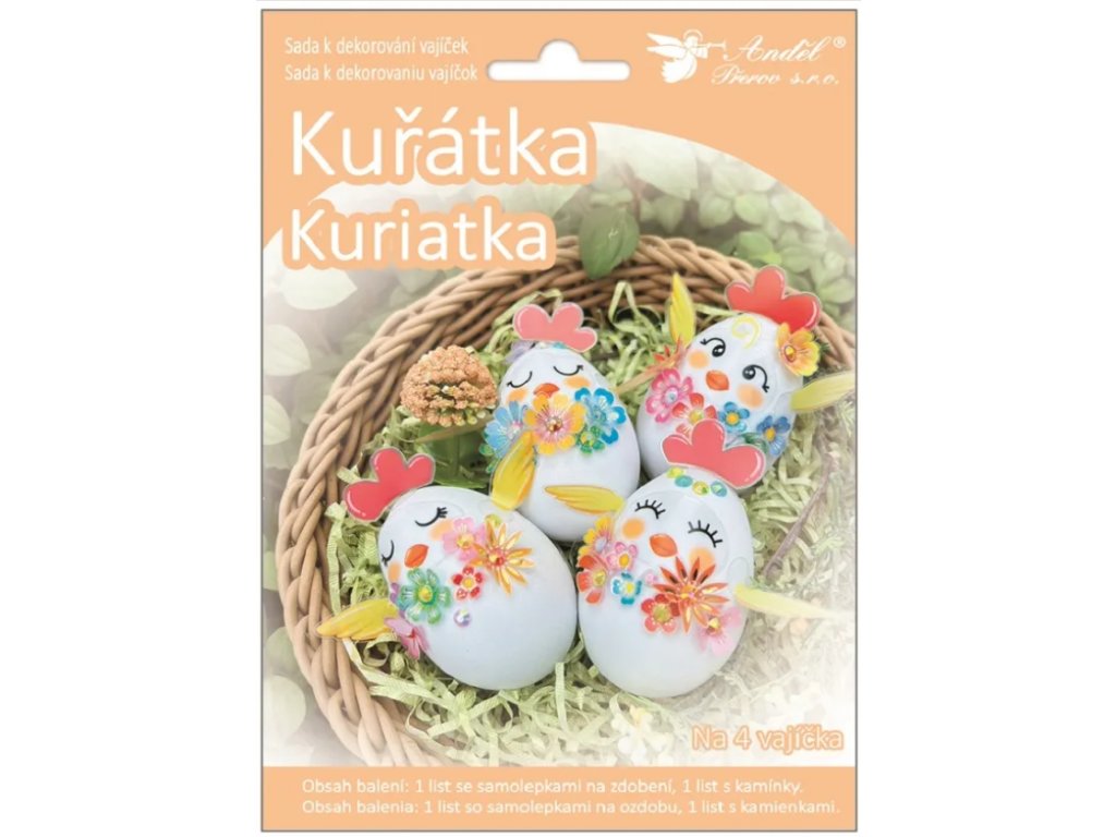 obsah balení: 1 list se samolepkami, 1 list s kamínky (na 4 vajíčka)