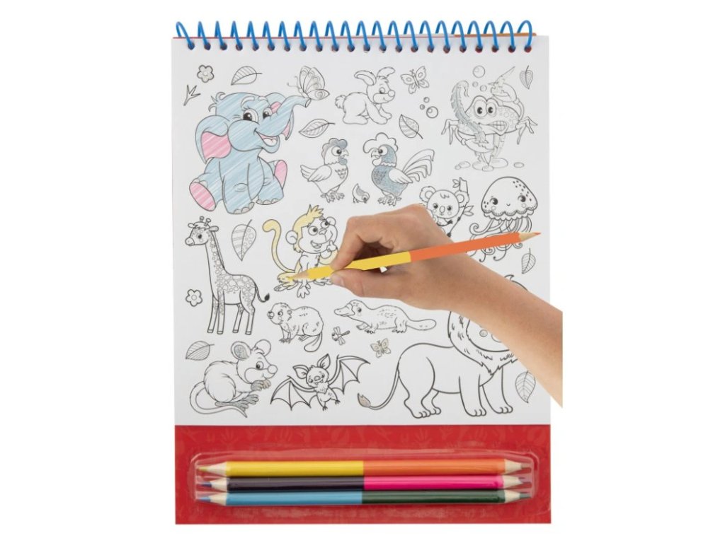Součástí balení jsou také 3 oboustranné pastelky (celkem 6 barev), takže se děti mohou pustit do tvoření hned po otevření. Aktivita podporuje kreativitu, jemnou motoriku i soustředění a je ideální na doma, na cesty nebo jako klidnější zábava na odpoledne.