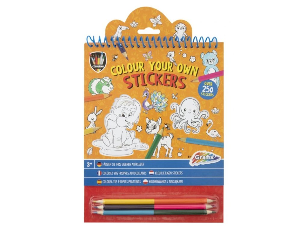 obsah balení: 250 samolepek k vymalování + 3 oboustranné pastelky (6 barev)