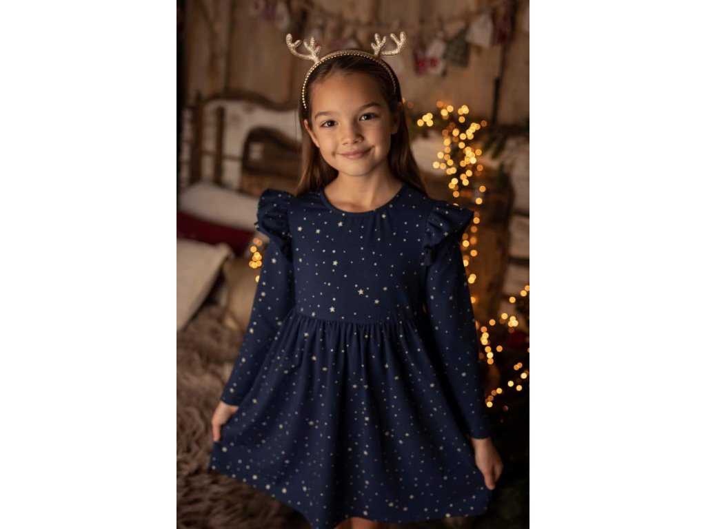Tmavě modrý odstín působí slavnostně a zlaté hvězdičky mu dodávají jemný třpyt, který rozzáří každý krok.