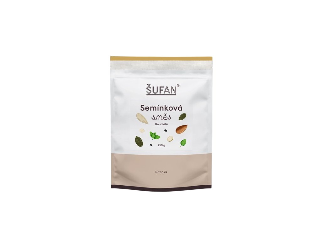 ŠUFAN semínková směs na salát je poctivá a univerzální chuťová bomba, která promění běžný salát nebo zeleninovou misku v plnohodnotné jídlo plné textury a živin. Směs pečlivě vybraných semen (např. slunečnicových, dýňových či sezamových) přidává do vašich jídel křupavý kontrast, přírodní tuky a vlákninu — bez umělých přísad a zbytečného cukru.