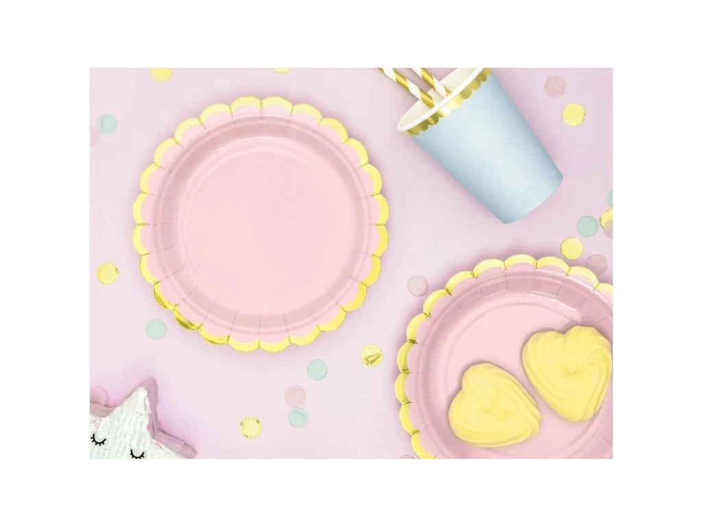 Papírové talíře v jemné růžové barvě se zlatým okrajem, které dodají každé oslavě elegantní vzhled. Vhodné na narozeniny, baby shower, svatby i další slavnostní příležitosti. Talíře jsou vyrobeny z papíru, takže jsou praktické na jednorázové použití bez nutnosti mytí. Díky jednoduchému designu je snadno sladíte s dalšími dekoracemi a doplňky. Průměr talířů je cca 18 cm a balení obsahuje 6 kusů.