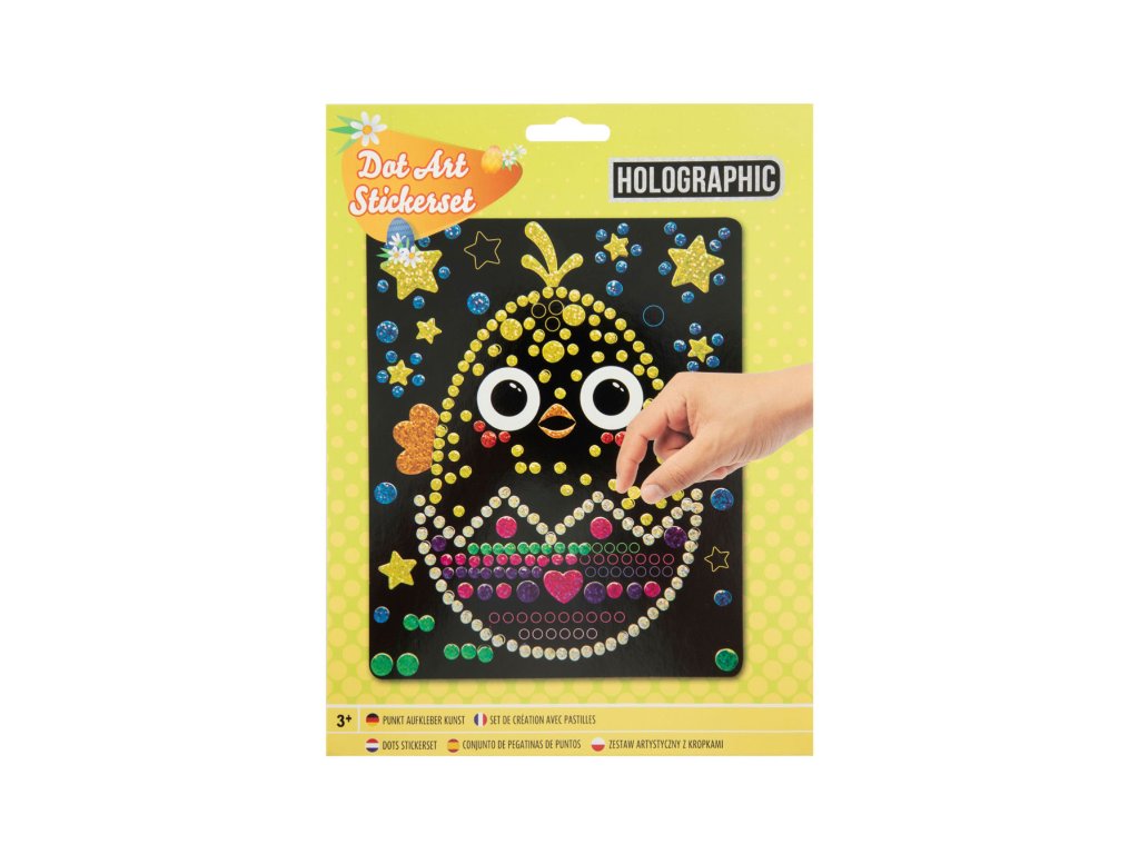 Mozaikový holografický obrázek s motivem velikonočního kuřátka ve vajíčku je radostná kreativní aktivita, která spojuje tvoření s efektním výsledkem plným lesku a barev. Děti lepí malé holografické puntíky nebo dílky podle čísel na předtištěný podklad a vytváří tak třpytivý obrázek, který krásně odráží světlo a září z různých úhlů.