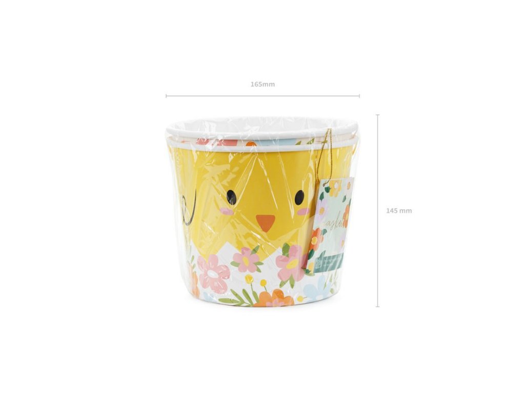 Veselé papírové kyblíčky s jarními motivy se hodí k jarním oslavám, velikonoční výzdobě i kreativnímu využití doma či na párty. Tento papírový kbelík může sloužit jako malý košík na sladkosti, sběr barevných vajíček, úložný box na drobné dekorace nebo jako hezký doplněk stolování či sváteční tabule. Díky decentnímu a hravému designu laděnému do jarních tónů se skvěle doplňuje s dalšími velikonočními dekoracemi.