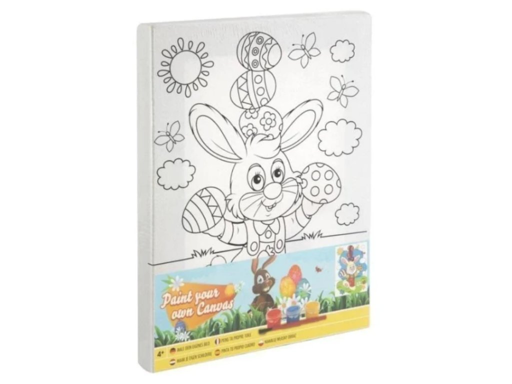 Velikonoční malování na plátno je úplná kreativní sada, která promění obyčejné odpoledne ve tvořivý zážitek. Obrázek s jarním a velikonočním motivem je předtištěný na plátně, takže děti mohou rovnou začít malovat podle své fantazie nebo podle vlastní barevné představy.