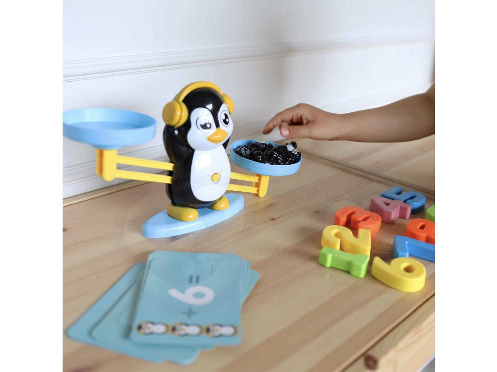 Učení matematiky může být zábava. Stačí položit číslici na jednu misku a odpovídající počet tučňáků na druhou – když je příklad správně, váha se vyrovná. Díky tomu děti snadno pochopí vztah mezi číslem a množstvím.
